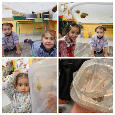 EL BRUNO HA PORTAT UN CARGOL DE VERITAT, DINS D'UNA CAPSA ON LI HAVIA POSAT HERBES. HEM PENSAT QUE TENIR-LO TOTA L'ESTONA A DINS NO ESTARIA BÉ, JA QUE A NOSALTRES TAMPOC ENS AGRADARIA.